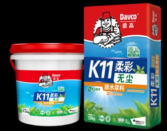 在2018年改进了防水生产线,通过了德高独创的净尘技术,推出了德高K11柔彩无尘防水浆料,从施工者健康角度出发,有效降低扬尘,拒绝雾霾,从根源处保护师傅们的身心健康。