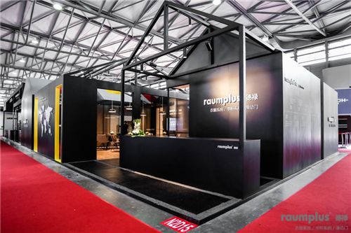 raumplus德禄参展面积较去年扩大了70%,风格上更是有了极大的突破,黑色和浅灰为主色调的外墙内敛而低调,黑洞石裁切铺设的走道自然中透着精致,细节之处的色彩与材质搭配都彰显着德系建筑的大气干练。三列尖顶造型的斯堪的纳尼亚风“联排别墅”,尽显原汁原味的巴伐利亚风情。棱角分明的简洁外表和井然有序的内在动线,显露着德系品牌所独有的严谨特质。可是,谁说德国人没有点小心思呢?那斯堪的纳尼亚风尖屋顶上的天窗点缀着鲜明的红黄德国国旗色,让整个展台在一片肃穆中平添了一份生活的悦动。走近raumplus德禄展台,就仿佛面对着一个许久不见的德国老友,严谨的外表下却不失一份亲切。
