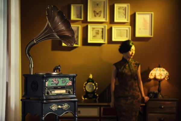上世纪二三十年代的旧上海,曲折的弄堂,昏暗的灯光,孤单的长影;华美的旗袍,丹艳的红唇,精致的妆容;晕开的烟圈,旋转的黑胶,悠扬的音乐。这是一段峥嵘的岁月,留声机与旗袍的流行,开创了中国近现代时尚文化的先河。留声机和旗袍也成为了旧上海的符号,是奢华与权贵的象征。