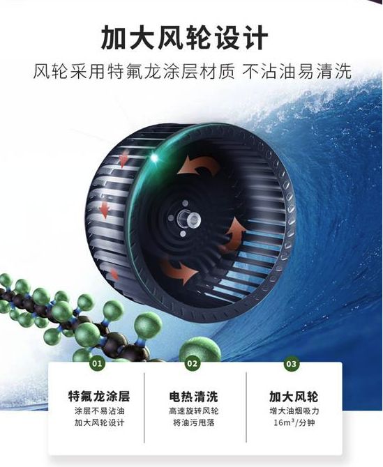 侧吸下排技术是从燃气灶侧面25~35cm高度处设置吸烟口,大功率电机配合微空气动力学强力控烟吸烟,油烟瞬间吸收,不过脸、不逸散,保证厨房环境不受污染,家里永远不会沾染烟味。