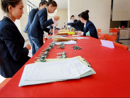 5月31日上午,太子现代广场交房现场人声鼎沸,从办理交房手续到入户验房,每个环节都井然有序。为了以高标准高起点迎接全球业主的检验,太子物业多次对每个楼栋每套房逐一进行排查验收,确保给所有业主带来完美的交房体验。交房过程中,太子物业工作人员细心提示业主验房过程中需要注意的事项,耐心倾听每一位家人的心声,不负每一位业主的信任,赢得现场业主“点赞”。