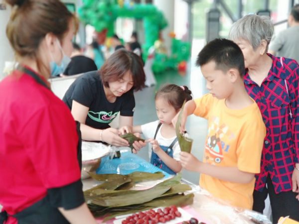 现场能看见好多市民朋友其乐融融、有说有笑的包粽子、话家常。喜欢甜的多加两颗枣,口味随你调。转眼间,粽子就包好了,放入锅中烹熟,和家人、邻里一起品尝自己亲手包的粽子,这个端午节就算圆满了。