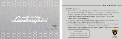 此售后保障卡为德诺壁纸软装兰博基尼壁纸产品官方售后保障卡,凭此卡可享受兰博基尼壁纸终身售后保障服务。