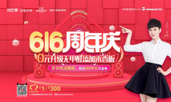 诗尼曼16周年庆,诚邀国民女神海清,以“清爱的星居”为主题,联合全国1200家旗舰店,为爱全面升级,以一站式整装定制,给消费者一个绿色健康的家,营销力度再刷新纪录!