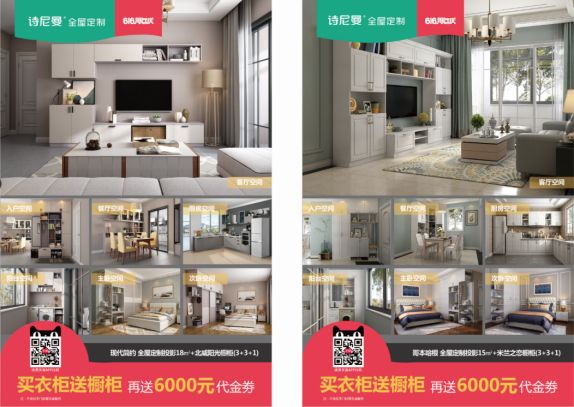 诗尼曼持续深化大家居战略,目前已形成全屋定制系统、厨房系统、智能门窗系统、木门系统、全优家品、AI整装等六大产品体系,涵盖衣柜、橱柜、门窗、床、床垫、沙发、茶几、餐桌椅、窗帘、地板、吊顶、厨电等全品类家居产品。此次16周年庆,诗尼曼持续力推“买衣柜送橱柜”,满一定金额的基础上再送6000优惠券,给客户提供一站到家的全屋定制套餐,让客户定制家居更省心、省钱又省力。