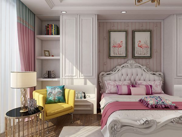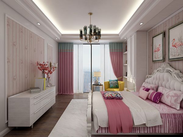 采用对比色的色相搭配法,蓝色和粉色搭配充满生机和希望,清新又圆的意境营造出恬淡舒适的家庭氛围。优雅的曲线勾勒出美好生活,是家人们望远盼归的物化象征,也会使人得到一种明朗素雅,和层次分明的韵律享受。