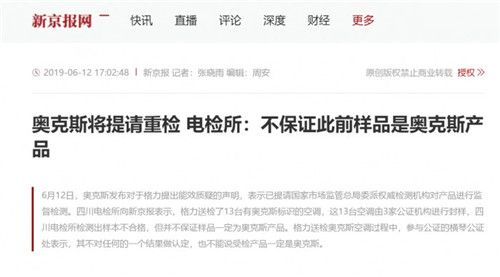 刚刚,新京报媒体发布消息称,受格力电器委托的四川省电子产品监督检验所最新表示“不保证受检产品是奥克斯”。