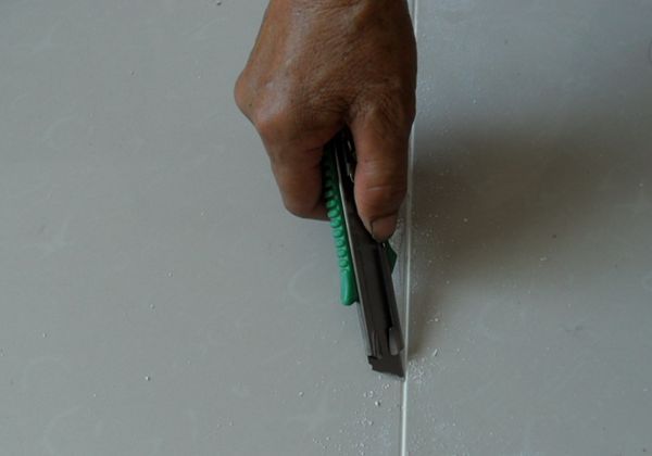 5、压平美缝:打完美缝剂后,就是压缝了。要注意压缝时间,夏天要在10分钟之内压缝,冬天的话要在30分钟之内压缝。压缝的时候,要用力用刮板将美缝压平,不留缝隙。