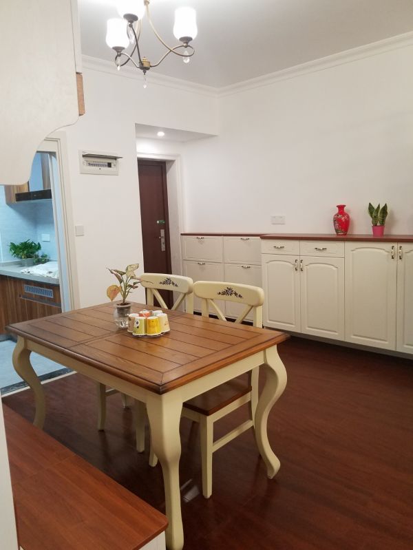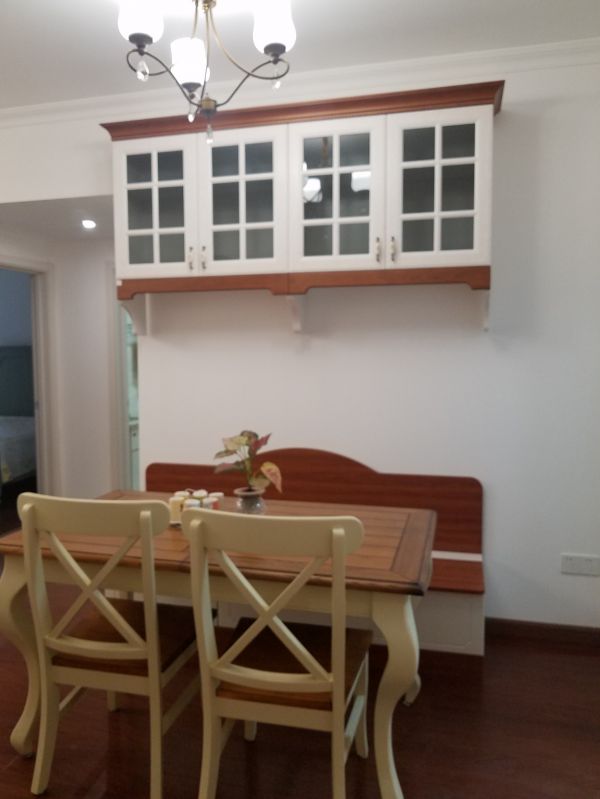 餐厅实拍:靠近厨房而且面积不大,特意做了卡座餐桌,安装餐边柜增加收纳空间。