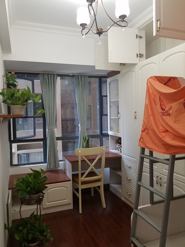 卧室实拍:姚小姐最喜欢书桌衣柜定制化设计,节省空间,特别适合面积不大的房间。