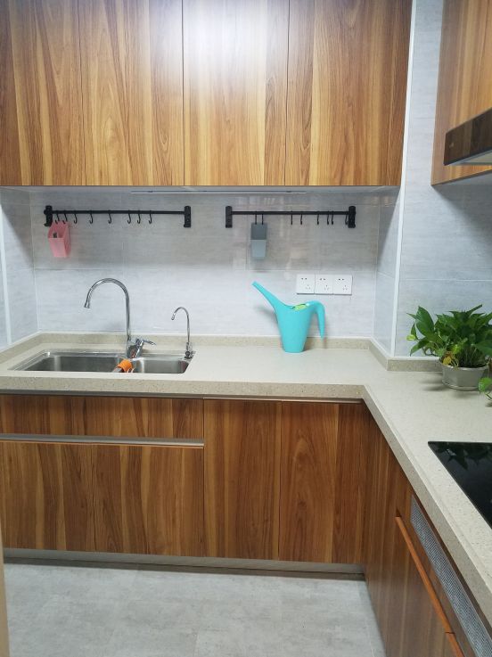 厨房实拍:橙家L型厨房布局,实用空间大。
