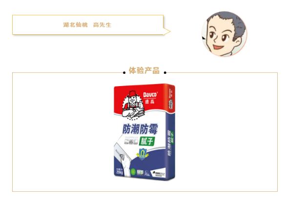 看来,又是一位德高老粉丝!德高内墙防潮防霉腻子采用多种优质原材料复合而成的室内用腻子,具有粉体细腻、洁白、防霉透气等优点,非常适合室内墙面和顶面的抹面找平处理。
