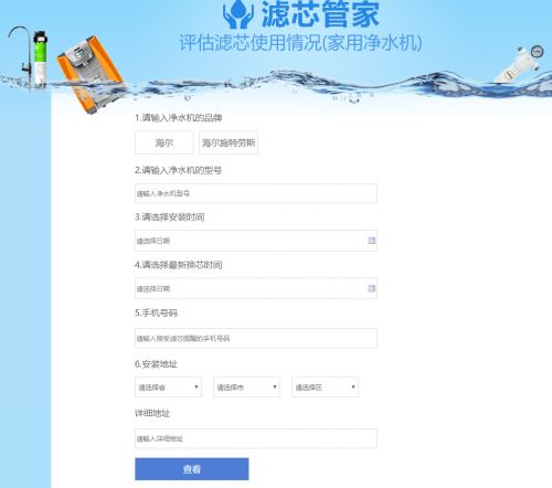 如何解决这一痛点?海尔提出了相应的解决办法,在海尔净水商城上推出了“滤芯管家”这一服务,可以随时评估自己家净水器的状况,填写了购买时间等信息后系统即可推算出滤芯的使用寿命,根据相应的结果即可提前知道是否该更换净水器滤芯。