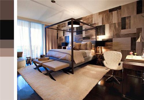 以微妙的木质地板为背景墙来搭配抽象的画,张扬中透出内敛的气息,奶白色的地毯最大限度地将视觉重心汇聚于画像,而棕色椅子又稍稍平衡了这种视觉落差。