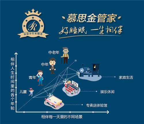 慕思寝具总裁姚吉庆表示,慕思金管家服务是全生命周期的睡眠服务,覆盖从儿童到老年人的时间纵轴,以及从门店到生活日常的时间横轴,链接多场景,旨在让不同年龄层的消费者在不同场景便捷地享受慕思的专业睡眠服务。