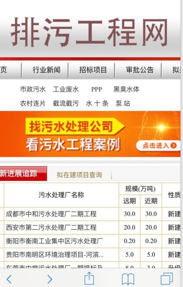 作为专业性很强的门户网站,排污工程网的信息资源是非常全面的,大致分为“行业新闻”、“招标项目”、“审批公告”、“拟建项目”、“中标公示”、“十三五规划”、“业主委托”、“污水处理技术”、“水质标准”、“政策法规”十大板块,基本涉及排污领域的方方面面。