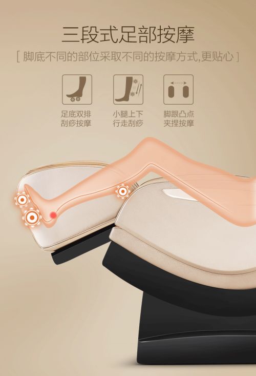 足疗文化源远流长,相信很多人都有过做足疗的经历,有了按摩椅,让爸爸在家就可轻松做足疗。荣泰RT6601按摩椅对腿足部分进行了升级,新增了腿部滚轮,使小腿肚得到更好的放松,足底设有双排滚轮,滚轮上有按摩凸点,对足底穴位进行刮痧按摩,显著刺激脚底各部位反射区,同时脚后跟部还设有夹捏式按摩,给脚部全方位的呵护。