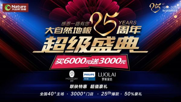 错过直播的你,绝对不可错过“大自然地板25周年超级盛典”啦,快到大自然地板专卖店预定福利吧。