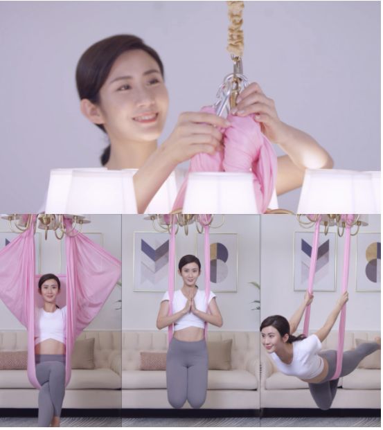 为了检测月影吊灯的受力重量,小月老师给大家进行一个较为危险的检测,请勿模仿。小月老师在吊灯上挂上瑜伽绳子,并在瑜伽绳子上做各种瑜伽动作,1小时后灯具几乎没有任何变形。