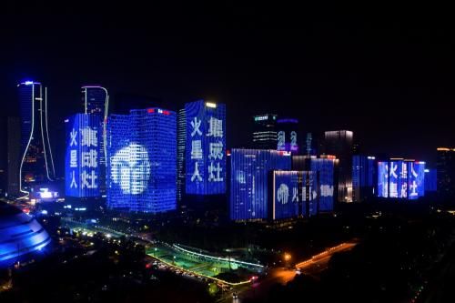 6月15日晚,火星人集成灶联合杭州钱江新城上演了一场绚丽夺目的灯光秀。35栋连体建筑群联袂呈现,点亮杭州夜空。