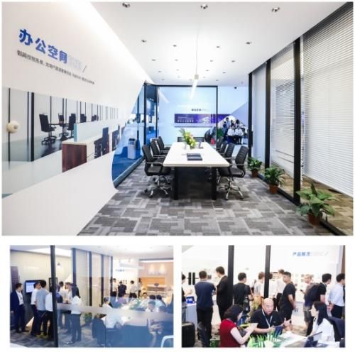 最后是聚焦健康舒适节能环保智慧办公好环境的办公空间。在这里,用户可以利用液晶屏场景面板,实现多屏互动、调节会议室的不同模式。另一方面,照明感应器可调节适合的亮度,环感应器可以检测室内的温度、空气质量,自动打开空调和新风系统等操作,从而为用户营造一个健康舒适、节能环保、智慧高效的办公环境。