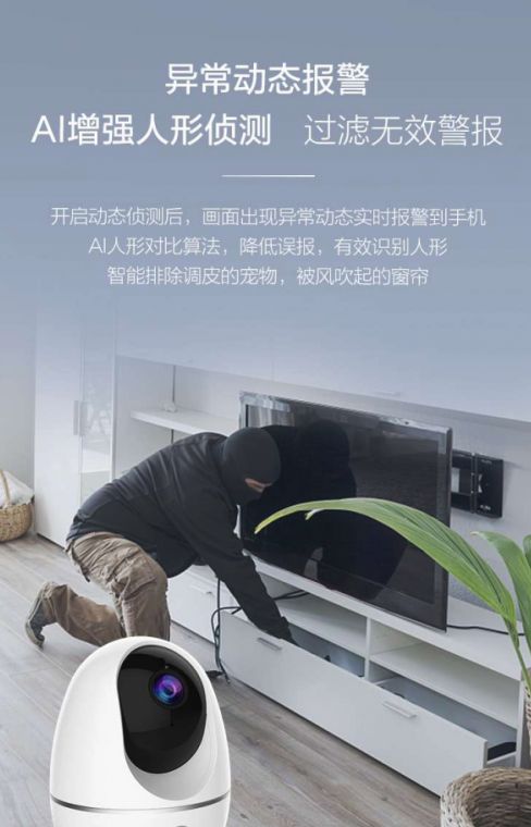 同时,作为一款安防工具,苏宁小Biu智能摄像头还拥有另一项安防黑科技——AI人形侦测。在主人外出的场景中,苏宁小Biu智能摄像头能够对室内环境明察秋毫,对室内的异常人形动态准确侦测并实时报警。同时,在与宝宝分床睡的夜间,苏宁小Biu智能摄像头也可以通过此功能侦测到宝宝的异常动态,并及时反馈到手机APP。AI人形对比算法,可有效识别人形,智能排除宠物、窗帘等引起的非异常动态,降低误报。