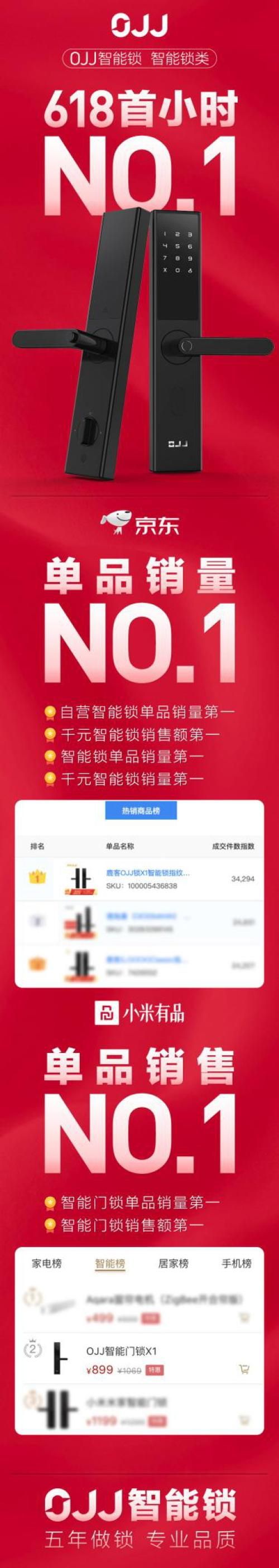 等了这么久,618终于迎来了最后的“决战时刻”。对众多的网友来说,这是一次比拼手速、经济实力以及人品的好机会;但对众多品牌而言,这却是一次酝酿已久的终极大考,能否赢得消费者的喜爱还是靠实力。在当下火热的智能锁市场,行业领军品牌鹿客携旗下性价比爆款OJJ 智能锁再次取得了骄人的成绩,在京东、小米有品等平台上收获多项冠军,成为618最为火爆的智能锁单品。