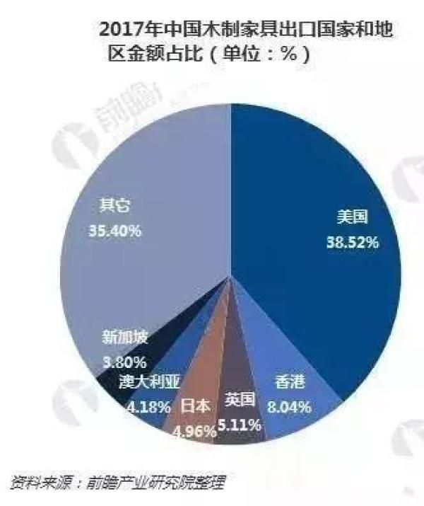 林作新教授指出,“以木质家具来说,2017年出口为137.29亿美元,比起2016年出口是下降了,其中52.88亿美元出口美国,占比为38.52%,但另外11.03亿美元是通过香港出口(占比为8.04%),估计大部分还是转口到美国,那单一美国市场,就占比45%左右了。”