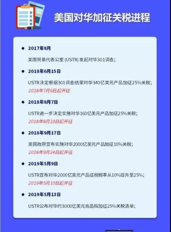 5月13日,美国贸易代表办公室(USTR)计划在以前的2000亿美元商品加征关税的基础上,公布再对约3250亿美元中国商品拟加征25%关税清单,不过具体开征还得等到6月24日公开征求意见后。