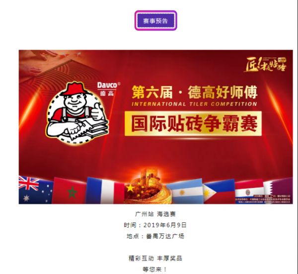 第六届·德高好师傅国际贴砖争霸赛校园赛号角,全面吹响,诚邀全国各地的莘莘学子报名参与。用匠心丈量世界,持之以恒,不负青春韶华!