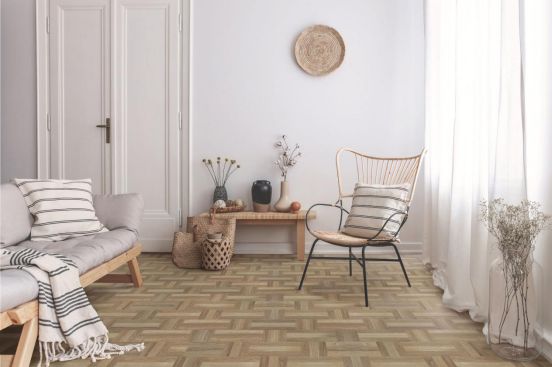设计精美的Hasta La Vista拼花具有公认的高颜值外表,纵横编织的纹理立体自然,空间表现力满分,表面拉丝处理质感出众,具有普通木地板无法媲美的美感,可以让家瞬间跻身时尚圈,美颜度爆表!