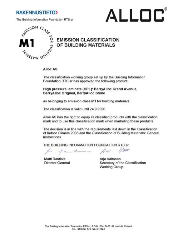 Hasta La Vista拼花从原材料选择、制造到生产过程均尊重自然环境,坚持可持续发展原则。获得了欧洲最权威的环保标志——芬兰M1环保认证,相当于室内玻璃气味挥发的级别,达到了食品、制药级标准。据悉,M1认证是美国白宫和英国白金汉宫内墙装饰招标的首要标准。