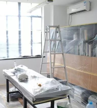 四季森林工作人员开始进行室内保护工作。把现场的家具、门框、踢脚线、地板等,采用了全方位的保护,为下一步的涂刷做好准备工作。