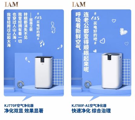 今年618,智能、健康仍是空净品类的主打卖点,而IAM的稳定发挥,也得益于此。IAM旗下空净产品囊括KJ1500F、KJ1000F、KJ800F、KJ780F等不同能效的产品型号,在除醛、净霾等方面具有突出的优势。除了产品本身的优势之外,此次618,IAM在社交化营销方面也标新立异。