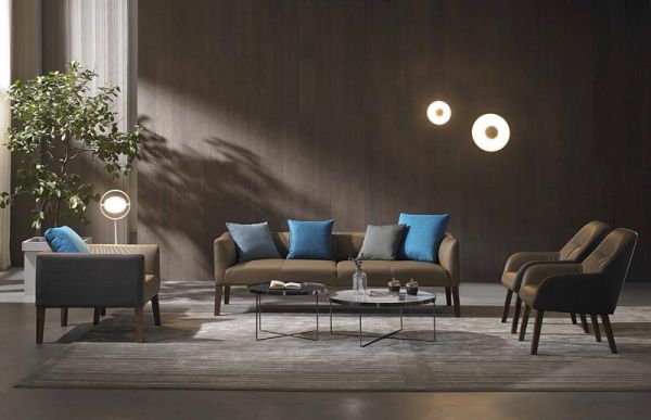 D5系列选用北美进口胡桃木、高级真皮、布艺、印度多彩石等优质材料。胡桃木的温润色泽尽显内敛的高贵气质,独特的大山纹清晰优美,沉淀自然的美好形态;柔软的真皮与理性的古黑色金属结合,为休憩的悠闲时光增添趣味;深沉粗犷的石材元素与几何感极强的设计搭配,定义现代起居美学,营造简约安逸的居家生活区。