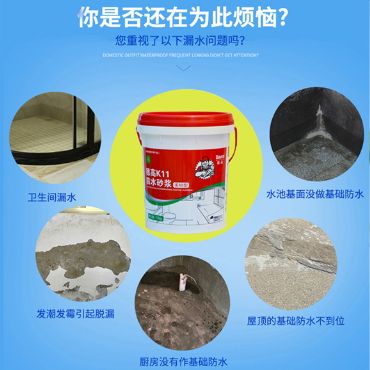 厨房和卫生间不仅是防水工程的重点区域,还都是要贴瓷砖的,所以墙面选防水材料,需要优先考虑贴砖是否牢固的问题。德高推荐K11通用型防水浆料,它属于刚性的防水,干固成型之后表面比较硬和粗糙,而且具有渗透结晶的功能,不管是与基面的粘结,还是与贴砖材料的粘结,都非常牢固。