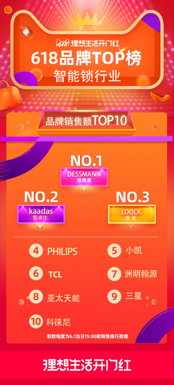 科徕尼智能锁 天猫618大促冲进指纹锁行业前10