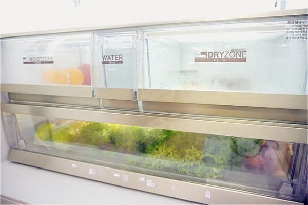 走近冰箱1.5米以内,触控屏与LOGO灯就自动亮起来。轻轻滑动一下屏幕,冰箱门立刻打开。冰箱内灯是3秒慢慢亮起来的,柔和不刺眼。在初步体验上,天成冰箱的智能感知设计让人印象深刻,够人性化。
