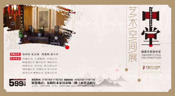由东阳红木家具市场策划承办的“水墨会中国首届中堂艺术空间展”将于6月26日在东阳红木家具市场(世贸大道599号)三楼水墨会展厅预展。中信红木、年年红红木、大清翰林、御乾堂等多家知名红木品牌,将联合知名书法家包中庆、张玉海以及知名画家周逢刚、徐小丰等书画名家,为观众呈上数十组古典雅致的中堂艺术空间。