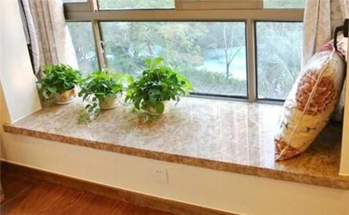 大理石坚固、耐用、纹理自然清晰、花纹独特,用大理石制作窗台石,不仅能起到不错的装饰效果,还可以防止溅落下来的雨水。但大理石有一定的辐射,会对身体健康造成影响,建议不要使用在卧室窗户边使用。
