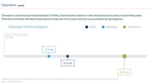 氯仿Chloroform:又称哥罗芳。会增加患癌症的风险,主要引起肝脏损害,并有消化不良、乏力、头痛、失眠等症状。全美平均值 11.5 ppb,纽约州平均值 16.4 ppb,纽约市为30.9 ppb,数值远超标准。