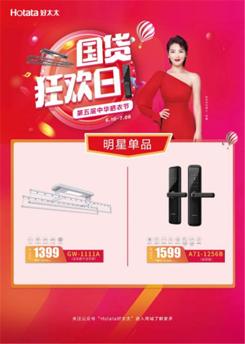 活动期间,晾衣机GW-1111A和智能锁A71-1256B推出节日狂欢价,线上线下均可购买
