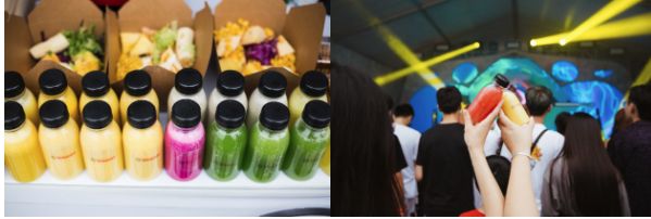 蹦养生迪当然要搭配养生美食,Vitamix精心准备的果蔬沙拉和三明治,加入营养丰富,香气十足的芝麻酱和沙拉酱,既绿色健康又方便食用,吸引众多乐迷购买和品尝。大家纷纷与手中的美食合影打卡,参与微博抽奖互动,赢得惊喜礼品,现场的产品体验区更是人气满满。