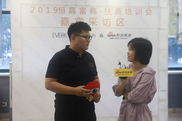 【新浪记者】:各位新浪网友大家好,我是新浪家居墙布频道记者濮思怡,现在我们位于2019恒高“富商·扶商”大会的现场,非常荣幸能够邀请到恒高优秀经销商曹宇接受我们的采访。曹先生您好,请您简单介绍一下自己?