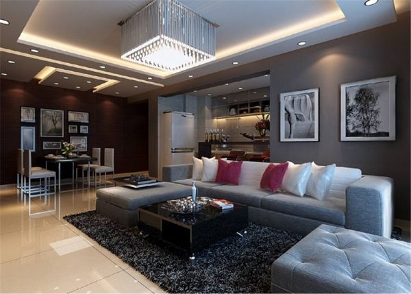 软装搭配是简约式家具装饰的重点,为居室留下变换的空间,与硬装完美的配合,才能碰撞出火花。茶几底下的深灰色毛绒地毯设计,瞬间为客厅提升质感,展示了主人的独特品味。
