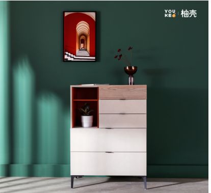关于HT系列斗柜,绝对是该系列里最灵活百搭的收纳“专家”!说它灵活是因为斗柜可根据自己需求放在卧室任意位置,方便又百搭。说它是收纳“专家”,是因为斗柜拥有开放格、小抽屉、大抽屉组成的五层储物分区。存取方便又极具展示功能的开放格、轻巧物品收纳的小抽屉和大件重物储放的大抽屉组合搭配。这里,笔者建议大家合理分类收纳物品,一定要遵循从上至下、由轻到重的科学收纳规则。