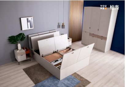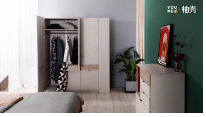 然而,柚壳HT系列卧室套装真正令笔者怦然心动的是它高效的收纳设计。平时的我们总是一边想着买买买,一边喊着断舍离,而柚壳HT系列卧室套装由榻榻米床、床头柜、衣柜、斗柜四种单品搭配组合,充分发挥板式家具的优势,多维度划分收纳空间,分分钟为你提升卧室空间的收纳能力。