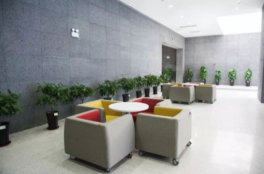 走进学校教学楼,沿着蓝灰色为主调的墙壁向前走,引导至明亮而洁净的接待大厅,这里既是进入学校的走廊,也是展现学生们才华的舞台,几步之外有一组舒适的沙发,供等候的家长们休息,温馨的气氛盎然一室。