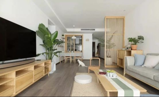 小编告诉你,全屋铺地板,轻松get北欧风。地板的木质属性,与北欧风的原木色调相辅相成。全屋通铺地板后,通过大量的墙壁留白、简单的装饰画以及绿植盆栽就可以得到你想要的北欧风情,无需较多的软装搭配。