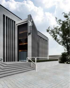邵沛在设计时,将LYB羽毛球馆定义为一栋现代风格的独立两层建筑,外观以灰色系为主,点缀黑色的线条状作为装饰,“LYB”的Logo落于正门的上方,整体干净犀利,又不失艺术时尚感。